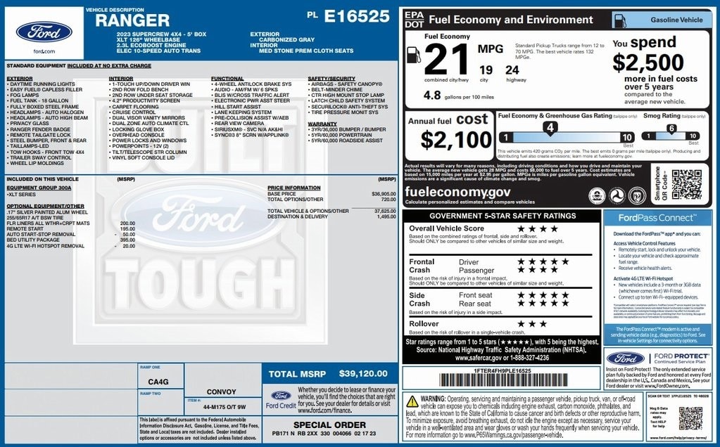 1 Owner, Ranger XLT, 4WD, 12V Power Plug, Alloy wheels, Auto High-beam Headlights, Bed Utility Package, Equipment Group 300A Standard, Exterior Parking Camera Rear, Plastic Drop-In Bedliner, SYNC 3/Apple CarPlay/Android Auto.