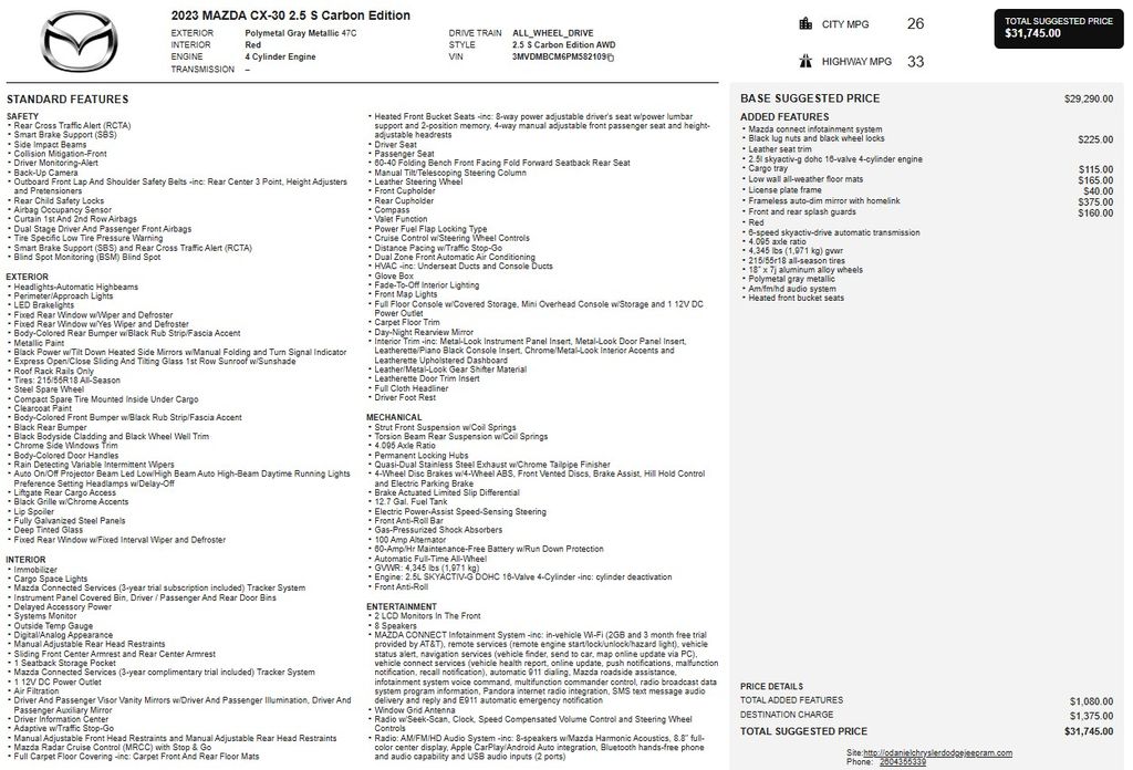 Discover the perfect blend of style, performance, and versatility in the 2023 Mazda CX-30 2.5 S Carbon Edition. This exceptional crossover SUV is a true standout, offering a captivating design, advanced technology, and a thrilling driving experience.