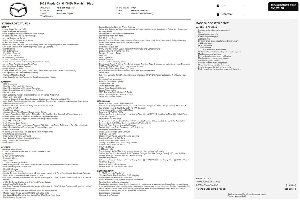 Powered by a 2.5L I4 DOHC 16V LEV3-SULEV30 engine and paired with an 8-Speed Automatic transmission, this CX-90 PHEV delivers a seamless and responsive driving experience, with the added benefit of all-wheel drive for superior traction and control.
