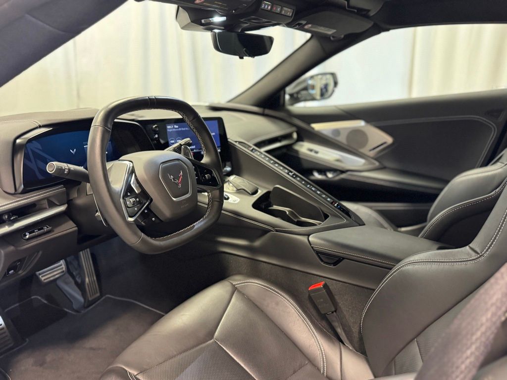 The Carbon Flash Metallic-Painted Outside Mirrors and Rear Z51 Spoiler not only enhance the Corvette's striking appearance but also contribute to its aerodynamic prowess. The Performance Exhaust with Stainless-Steel Tips adds a thrilling auditory element to your driving experience, while the Power-Adjustable Heated and Vented Seats keep you comfortable in any weather.