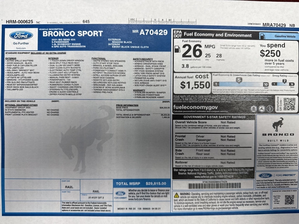 2021 Ford Bronco Sport Big Bend Shadow Black 4WD 1.5L EcoBoost