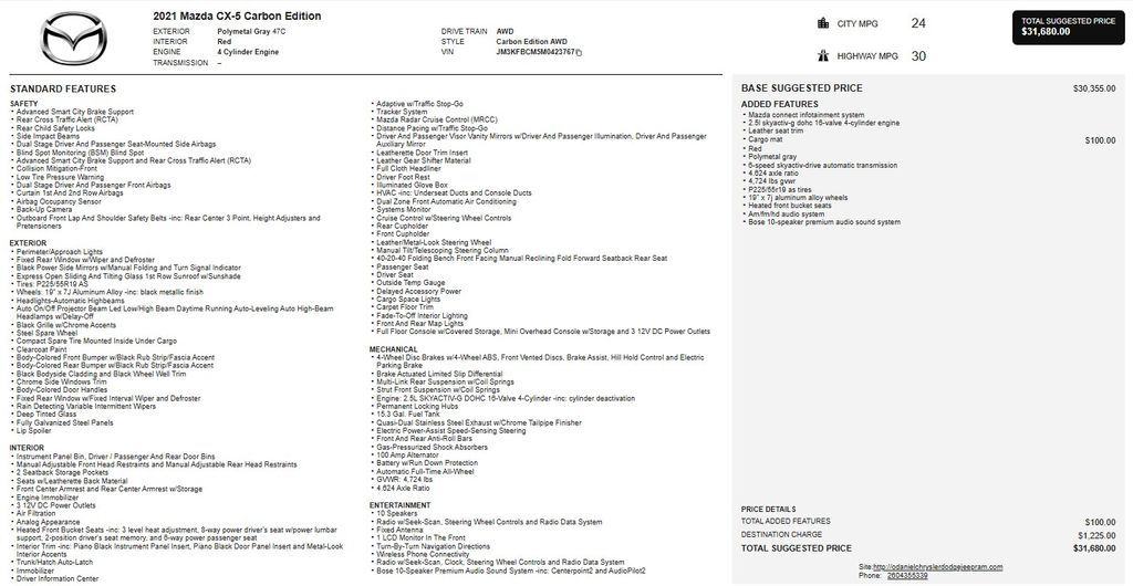 Whether you're commuting to the office, embarking on a weekend adventure, or transporting the family, this 2021 Mazda CX-5 Carbon Edition is the perfect companion. Experience the exceptional craftsmanship, performance, and technology that make this certified pre-owned crossover a true standout in its class.
