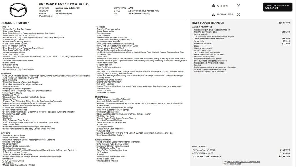 This exceptional 2025 Mazda CX-5 2.5 S Premium Plus Package is a must-see for anyone seeking a well-equipped, versatile, and stylish SUV. Experience the difference for yourself by scheduling a test drive today. We're confident you'll be impressed by the quality, performance, and value this CX-5 has to offer.
