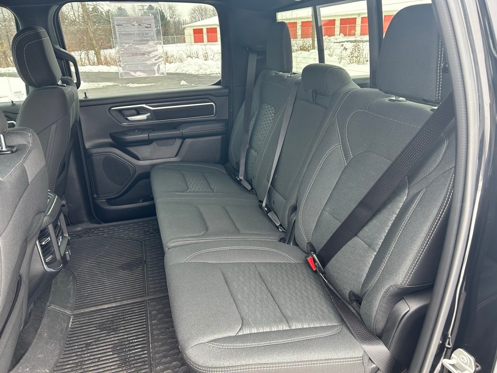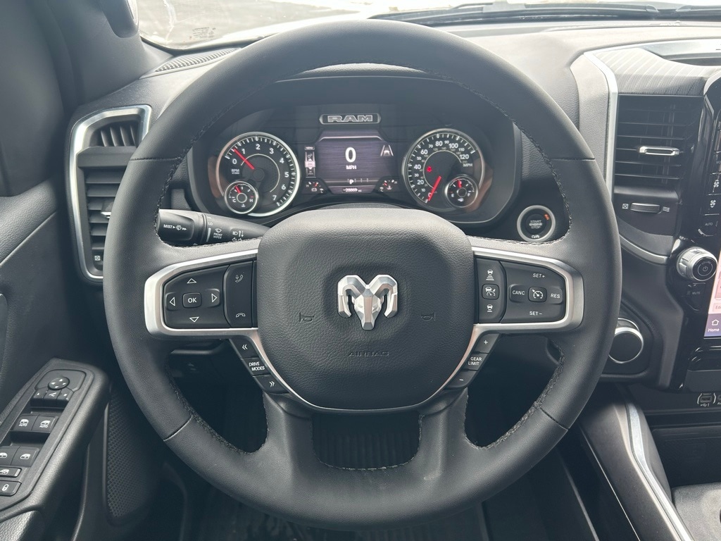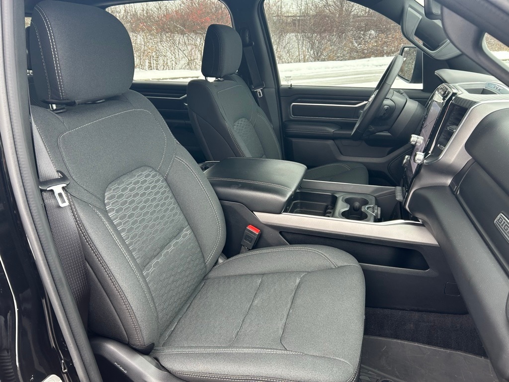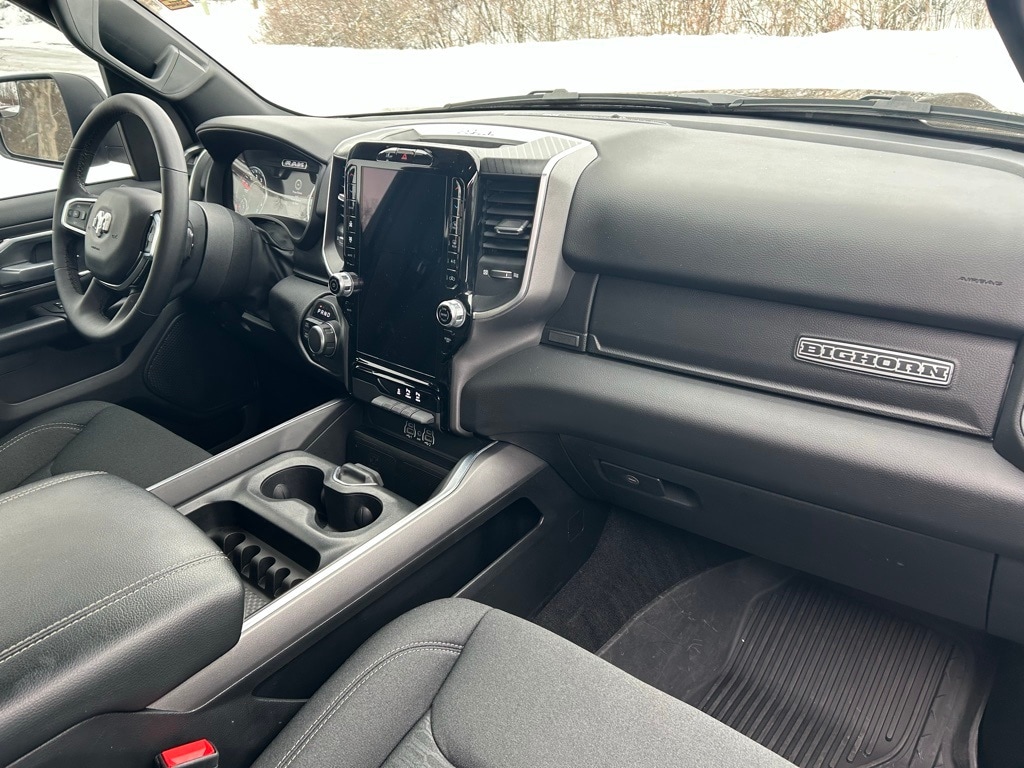 Night Edition, Big Horn Level 2 Equipment Group, 115V Auxiliary Power Outlet, 115V Auxiliary Rear Power Outlet, 12" Touchscreen Display, 2nd Row In Floor Storage Bins, 3 Rear Seat Head Restraints, 4 Way Front Headrests, 400W Inverter, 4G LTE Wi-Fi Hot Spot, 9 Amplified Speakers w/Subwoofer, Accent Color Door Handles, Accent Color Premium Power Mirrors, Accent Color Tailgate Handle, Air Conditioning ATC w/Dual Zone Control, Anti-Spin Differential Rear Axle, Apple CarPlay, Auto Power-Folding Mirrors, Auto-Dimming Exterior Driver Mirror, Auto-Dimming Rear-View Mirror, Big Horn Badge, Big Horn Level 2 Equipment Group, Black Exterior Mirrors, Black Exterior Truck Badging, Black Headlamp Bezels, Black Interior Accents, Black Painted Exterior Mirrors Caps, Black Premium Power Mirrors, Black Tail Lamp Bezels, Body Color Front Bumper, Body Color Rear Bumper w/Step Pads, Bucket Seats, Cluster 7.0" TFT Color Display, Configurable Drive Mode, Connected Travel & Traffic Services, Connectivity - US/Canada, Convex Wide-Angle Exterior Mirror Insert, Deluxe Cloth Bucket Seats, Exterior Mirrors Courtesy Lamps, Exterior Mirrors w/Heating Element, Exterior Mirrors w/Supplemental Signals, Front Seat Back Map Pockets, Full Length Floor Console, Glove Box Lamp, Google Android Auto, GPS Antenna Input, GPS Navigation, Grille Black Surround Black Mesh, HD Radio, Heated Front Seats, Heated Steering Wheel, Integrated Voice Command w/Bluetooth, Leather Wrapped Steering Wheel, LED Dome Lamp w/On/Off Switch, LED Footwell Lighting, Manual Adjust 4-Way Front Passenger Seat, Media Hub w/2 Charge Only USBs, Night Edition, Overhead LED Lamps, ParkView Rear Back-Up Camera, Power 2-Way Driver Lumbar Adjust, Power Adjust 8-Way Driver Seat, Power Adjustable Pedals, Premium Overhead Console, Quick Order Package 23Z Big Horn, Radio: Uconnect 5 Nav w/12.0" Display, RAM Grille Badge - Black, Rear 60/40 Folding Seat, Rear Center Armrest, Rear Power Sliding Window, Rear Window Defroster, Remote Tailgate Release, Security Alarm, SiriusXM w/360L, Steering Wheel Mounted Audio Controls, Sun Visors w/Illuminated Vanity Mirrors, Universal Garage Door Opener, USB Host Flip, Wheels: 20" x 9.0" Aluminum Painted Clad.